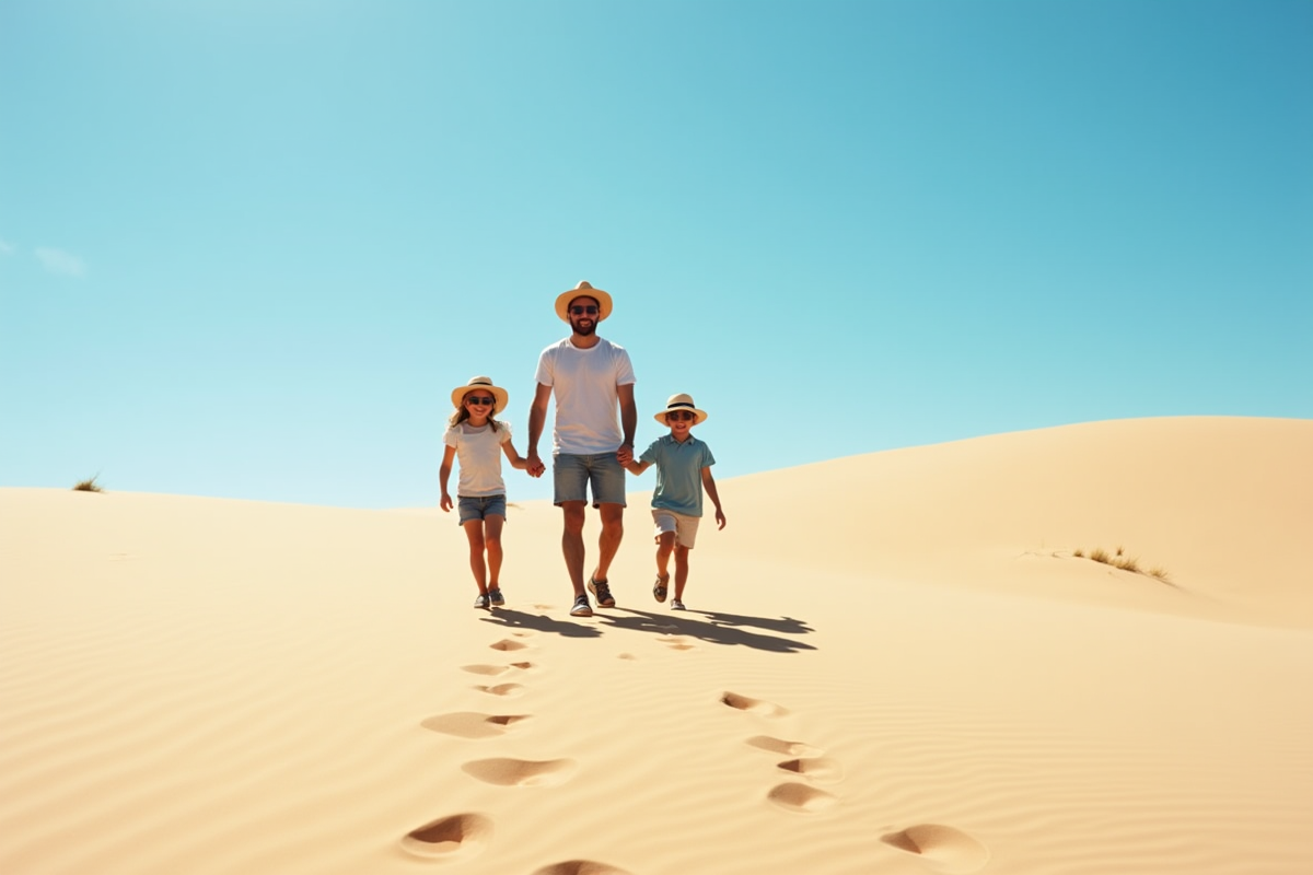 Chaque halte recèle sa part d’imprévu. Quand le soleil décline, le désert se métamorphose. Le rythme ralentit, les paysages gagnent en profondeur. Voyager en famille dans cet espace singulier, c’est accepter d’ouvrir grand les yeux, de s’étonner ensemble, et de savourer chaque détour inattendu.